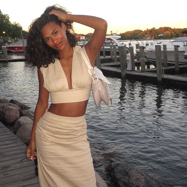 Une jupe mi-saison conçue pour la polyvalence. Confectionnée en sergé de coton luxueux, elle est élégante et décontractée. Ses plis cousus main aux hanches subliment parfaitement les courbes féminines. Taille mi-haute, vous pouvez choisir une taille au-dessus pour une coupe plus décontractée. Sa fente classique au milieu du dos vous offre une grande liberté de mouvement et révèle votre tempérament raffiné. Associez-la à notre haut court pour un ensemble intemporel.
