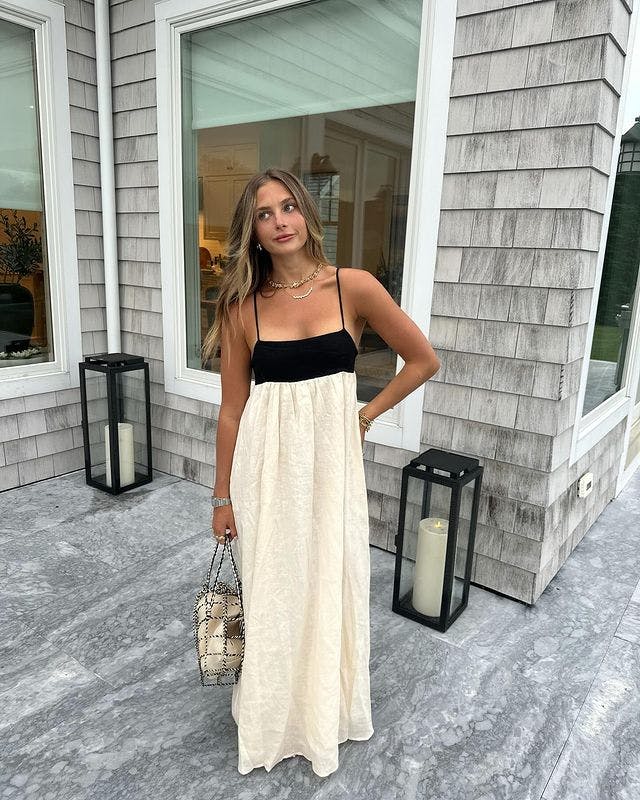 Linen Blend Sexy Sling Backless Contrast Maxi Dress
